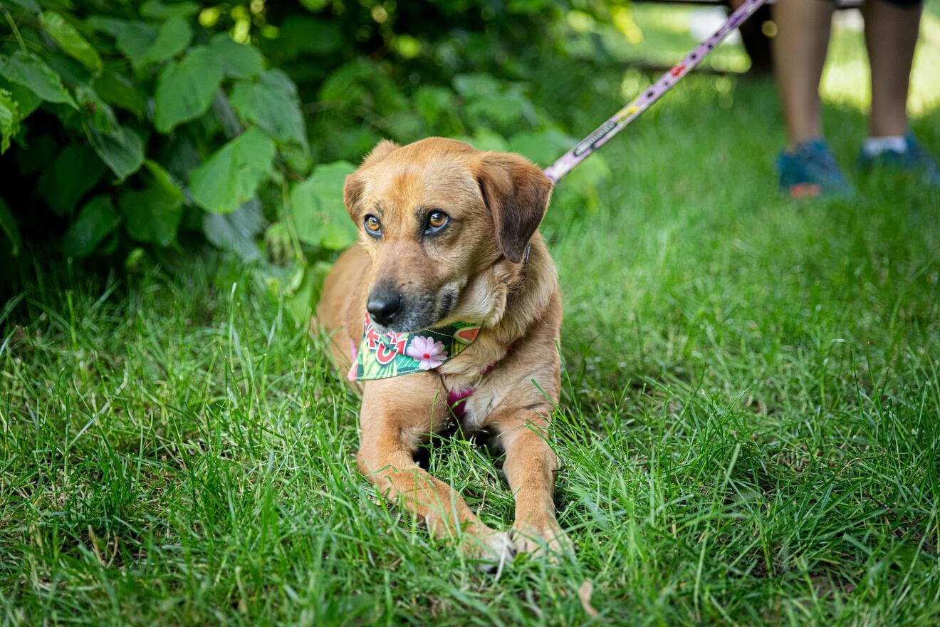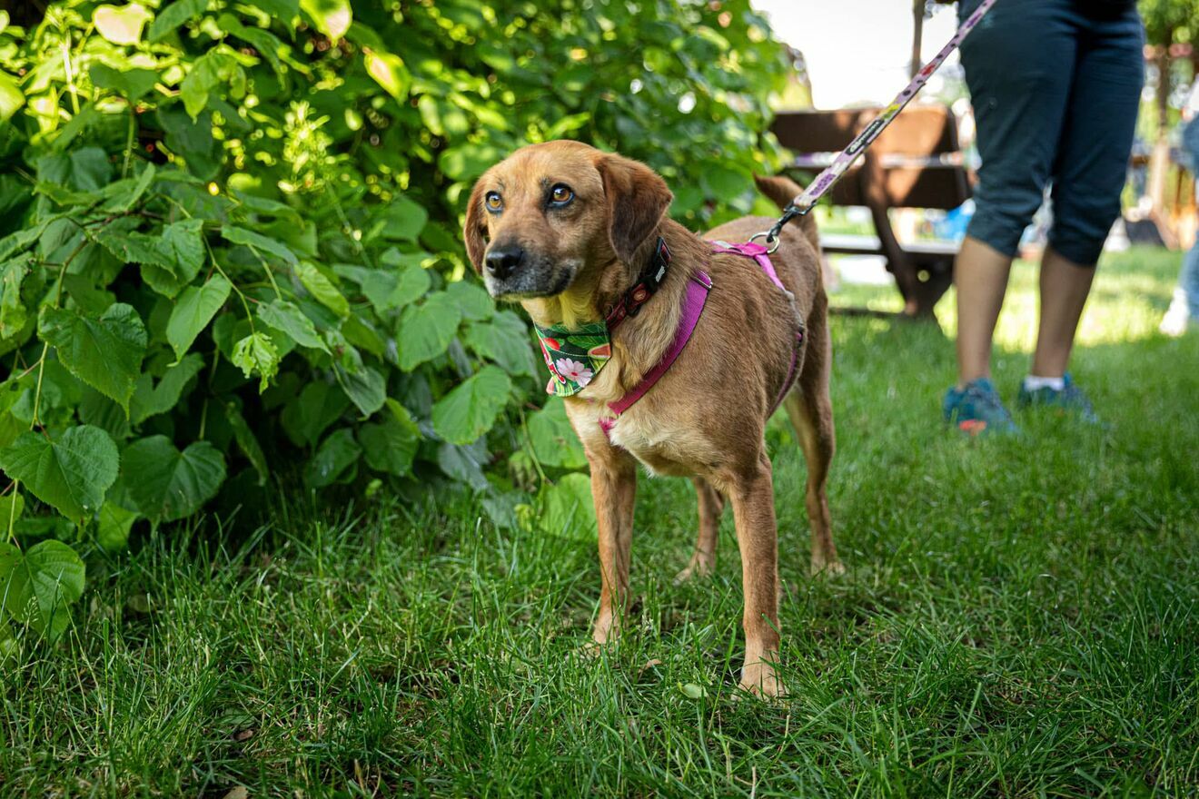 - na smyczy sobie radzi, była z naszymi wolo na akcji adopcyjnej,